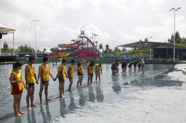 这次水上狂欢活动设置了运水接力、一圈到底、水上拔河等趣味活动项目。在清凉的水上乐园里,现场的同事们自行组队,分成了8个小队进行趣味活动比赛,大家轮番上阵,齐心协力,活动现场热火朝天。趣味活动后,同事们还一起体验了现场冲浪,整个水上乐园内充满了欢声笑语。