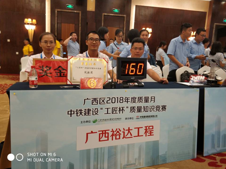 本次比赛,我公司派黄丽娜、蒙源接、何建推共3名同志进行参赛,并安排10名拉拉队员观赛助威。在26日的初赛闭卷笔试,我公司成功进入复赛,27日上午进行复赛中,以小组(共分2组,每组12队)第一的成绩顺利进入下午的决赛,通过团队答题、个人答题、看图识错、抢答题、自由抢答题等理论知识竞赛的比拼,最终获得了总分第四名的好成绩,并被授予“优胜奖”的称号。