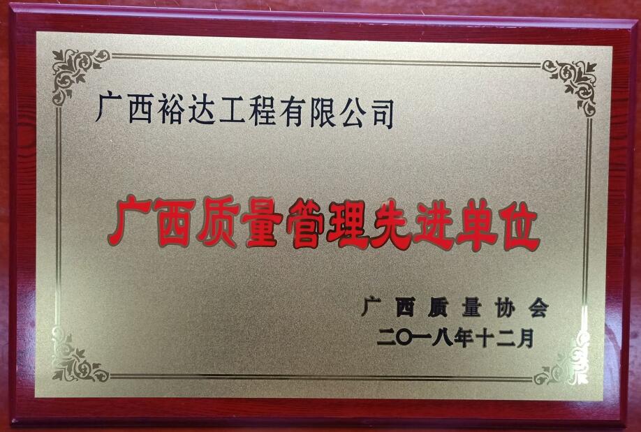 据悉,这次评优活动经过企业申报、相关部门推荐、广西质量协会资格审查、资料评审、综合评价等程序进行严格评比。此次被评为“2018年度广西质量管理先进单位”共63家,被评为“2018年度广西优秀质量管理工作者”共134名,我公司获此荣誉,实属不易。
