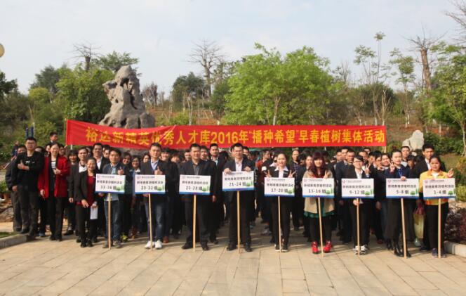 2016426日上午,由集团培训中心组织的裕达新精英优秀人才库2016年“播种希望”早春植树动员活动圆满结束。参加本次活动人员为裕达新精英优秀人才成员均来自集团各中心、各项目、各子(分)公司中层以上管理人员及在职的各体系大学本科生的员工,共计100人。