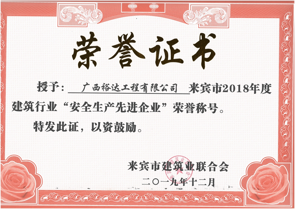 来宾市2018年度建筑行业“安全生产先进企业”